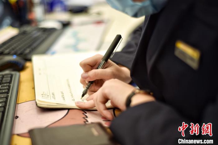 图为值班站长谢林珂记载着点点滴滴。(通讯员 李博烁 摄)