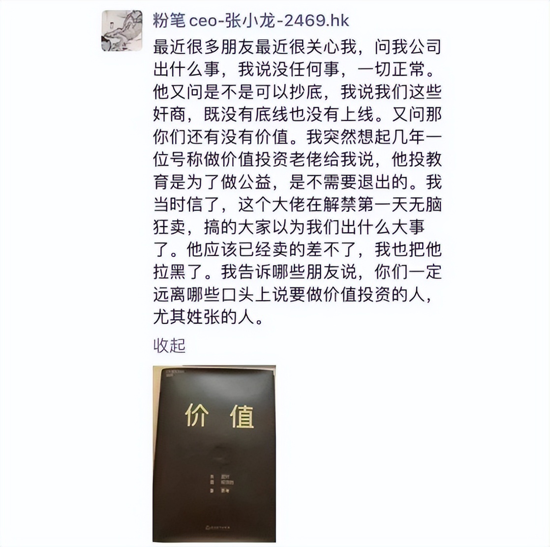 9月13日,网传粉笔CEO张小龙朋侪圈截图称,去安信基金路演,安信基金一位司理到粉笔公司路演时补妆、挤痘痘,不正眼看他。张小龙称就地发怒,而且专门坐电梯上去骂了她非常钟才脱离。对此,这位安信基金基金司理在朋 ...