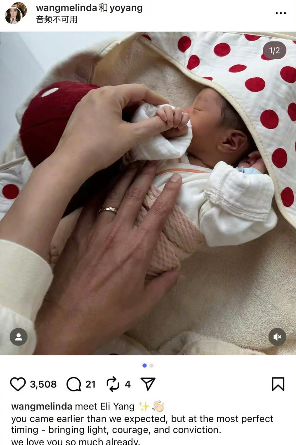 杨祐宁官宣三胎出生,宝宝正面照曝光好可爱,大手拉小手幸福满溢 ...