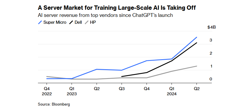 图注8:练习大规模AI的服务器市场正在鼓起。自ChatGPT推出以来,来自顶级供应商的AI服务器收入连续增长