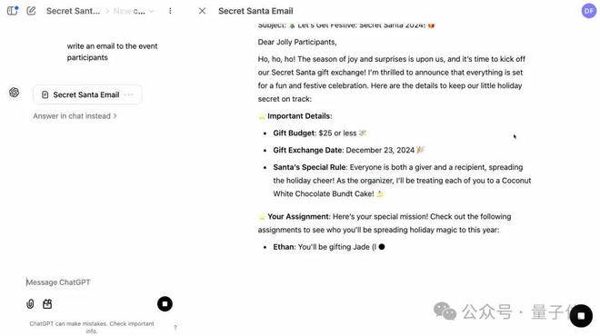 除此之外,直播职员还以“圣诞节互换礼品”这个项目做了更多功能的联动演示。 (一种圣诞节互换礼品的运动,通常在团队或朋侪之间举行;到场者事先抽签,相互送礼但保持匿名,直到礼品被发表。) 他在Projects里上传了三个文件,包罗规则、预算、运动细节等等: