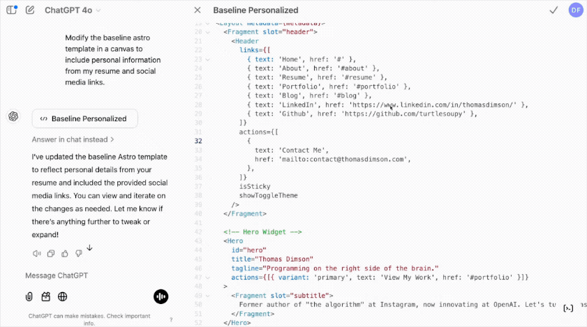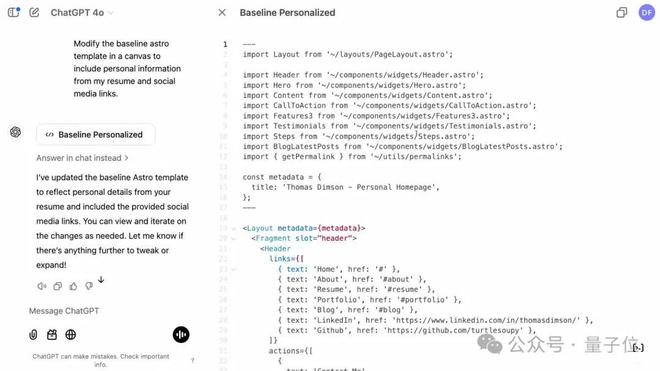 只需一句Prompt,Projects就能帮你天生修改个人网站对应的代码了: