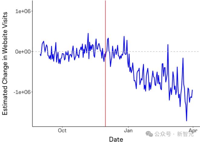 他引用了1976年《版权法》第107条中对「公道利用」的界说。 是否符合「公道利用」,应思量的因素包罗以下四条: (1)利用的目标和性子,包罗该利用是否具有贸易性子或是否用于非营利教诲目标;(2)受版权掩护作品的性子;(3)所利用部门相对于整个受版权掩护作品的数目和实质性;(4)该利用对受版权掩护作品的潜伏市场或代价的影响。 按(4)、(1)、(2)、(3)的次序,Balaji做了具体论证。 因素(4):对受版权掩护作品的潜伏市场影响 由于ChatGPT练习集对市场代价的影响,会因数据泉源而异,而且由于其练习集并未公开,这个题目无法直接答复。 不外,某些研究可以量化这个效果。 《天生式AI对在线知识社区的影响》发现,在ChatGPT发布后,Stack Overflow的访问量降落了约12%。