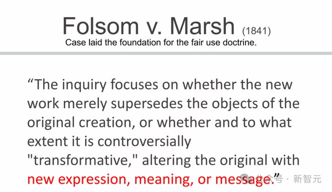 固然,OpenAI和谷歌如许的模子开辟商,也和Stack Overflow、Reddit、美联社、News Corp等签署了数据允许协议。 但签订了协议,数据就是「公道利用」吗? 总之,鉴于数据允许市场的存在,在未得到雷同允许协议的环境下利用受版权掩护的数据举行练习也构成了市场长处侵害,由于这剥夺了版权持有人的正当收入泉源。 因素(1):利用目标和性子,是贸易性子,照旧教诲目标 书评家可以在批评中引用某书的片断,固然这大概会侵害后者的市场代价,但仍被视为公道利用,这是由于,二者没有替换或竞争关系。 这种替换利用和非替换利用之间的区别,源自1841年的「Folsom诉Marsh案」,这是一个建立公道利用原则的里程碑案例。
