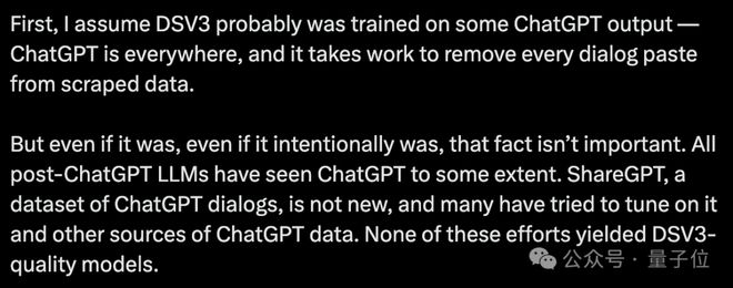 要说这两天大模子圈的顶流话题,那绝对黑白DeepSeek V3莫属了。 不外在网友们纷纷测试之际,有个bug也成了热议的核心—— 只是少了一个问号,DeepSeek V3竟然称本身是ChatGPT。 ![]() 乃至让它讲个笑话,天生的效果也是跟ChatGPT一样: ![]() 加之DeepSeek V3这次爆火的一个亮点,就是练习只花了557.6万美元的本钱。 于是乎,有人就开始猜疑了:它不会是在ChatGPT的输出底子上练习的吧? 好巧不巧,Altman也发了一个状态,好像在暗讽着什么…… ![]() 不外DeepSeek V3并非是第一个出现“报错家门”的大模子。 比方Gemini就曾说过本身是百度的文心一言 ![]() 那么这到底是怎么一回事? 起首必要夸大的一点是,从现在网友们团体讨论的观点来看,说DeepSeek V3是在ChatGPT输出上练习的大概性不大 ![]() 之以是这么说,正如网友Riley Goodside所总结的那样——由于ChatGPT的影子无处不在。 ![]() 紧接着,Riley Goodside又拿出了DeepSeek V3陈诉中的一些证据: ![]() 而比起用没用ChatGPT数据,大概昨们应当更加关注的是为什么大模子会频仍出现“报错家门”的题目。 TechCrunch针对这个题目给出了一句犀利的点评: 究竟欧盟的一份陈诉曾猜测,到2026年,90%的在线内容大概是AI天生的。 这种“AI污染”就会让“练习数据彻底过滤AI的输出”变得困难。 ![]() AI Now Institute的首席科学家Heidy Khlaaf则表现: 那么如今对于网友们热议的题目,量子位举行了一波实测,DeepSeek V3现在还没有办理这个bug。 仍旧是少了个问号,答复效果会不一样: ![]() 不外有一说一,绝大部门网友对于DeepSeek V3的本领是给予了大大的肯定。 从各路AI大佬们团体直呼“优雅”中就能印证这一点。 而就在这两天,网友们连续晒出了更多DeepSeek V3加持的实用玩法 比方有网友拿DeepSeek V3和Claude Sonnet 3.5一决高下,在Scroll Hub中分别用它俩创建网站 ![]() 视频地点:https://mp.weixin.qq.com/s/ieCfWqC5gsJ-Oc7-_L3uDQ?token=904287848&lang=zh_CN 博主在测试之后,以为DeepSeek V3完全胜出! 另有网友分享了用DeepSeek V3在AI视频编辑器中的体验。 他表现以后不消再在FFMPEG下令上浪费时间了,DeepSeek V3不但免费,还能改变你的工作流程: ![]() 视频地点:https://mp.weixin.qq.com/s/ieCfWqC5gsJ-Oc7-_L3uDQ?token=904287848&lang=zh_CN AI编程神器Cursor也能跟DeepSeek V3联合,来看一个做贪吃蛇的案例: ![]() 视频地点:https://mp.weixin.qq.com/s/ieCfWqC5gsJ-Oc7-_L3uDQ?token=904287848&lang=zh_CN 嗯,DeepSeek V3是有点好用在身上的。 对于此前公布的53页论文,也有网友关注到了一个非技能性的细节—— 贡献列表中,不但展示了技能职员,另有数据解释和商务等工作职员: ![]() 网友以为这种做法非常符合DeepSeek的调性: ![]() [1]https://techcrunch.com/2024/12/27/why-deepseeks-new-ai-model-thinks-its-chatgpt/ [2]https://x.com/victormustar/status/1872647314231398524 [3]https://x.com/breckyunits/status/1872422078592516295 [4]https://x.com/op7418/status/1872689338242482203 [5]https://x.com/goodside/status/1872911457857208596 [6]https://x.com/kevinsxu/status/1873146905846530472 ![]() 海量资讯、精准解读,尽在新浪财经APP