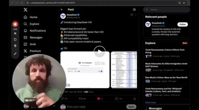 视频地点:https://mp.weixin.qq.com/s/ieCfWqC5gsJ-Oc7-_L3uDQ?token=904287848&lang=zh_CN 博主在测试之后,以为DeepSeek V3完全胜出! 另有网友分享了用DeepSeek V3在AI视频编辑器中的体验。 他表现以后不消再在FFMPEG下令上浪费时间了,DeepSeek V3不但免费,还能改变你的工作流程: