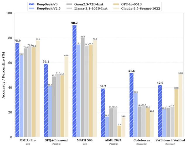 图片泉源:深度求索微信公众号 不外,广发证券发布的测试效果表现,DeepSeek-V3总体本领与其他大模子相称,但在逻辑推理和代码天生范畴具有自身特点。 更紧张的是,深度求索利用英伟达H800 GPU在短短两个月内就练习出了DeepSeek-V3,仅耗费了约558万美元。其练习费用相比GPT-4等大模子要少得多,据外媒估计,Meta的大模子Llama-3.1的练习投资凌驾了5亿美元。 消息一出,引发了外洋AI圈热议。OpenAI首创成员Karpathy乃至对此歌颂道:“DeepSeek-V3让在有限算力预算上举行模子预练习这件变乱得轻易。DeepSeek-V3看起来比Llama-3-405B更强,练习斲丧的算力却仅为后者的1/11。” 然而,在利用过程中,《逐日经济消息》记者发现,DeepSeek-V3竟然声称本身是ChatGPT。一时间,“DeepSeek-V3是否在利用ChatGPT输出内容举行练习”的质疑声四起。 对此,《逐日经济消息》记者采访了呆板学习奠定人之一、美国人工智能促进会前主席Thomas G. Dietterich,他表现对全新的DeepSeek模子的细节还相识不敷,无法给出确切的答案。“但从广泛环境来说,险些全部的大模子都重要基于公开数据举行练习,因此没有特殊必要合成的数据。这些模子都是通过细致选择和清算练习数据(比方,专注于高质量泉源的数据)来取得改进。” 每经记者向深度求索公司发出采访哀求,停止发稿,尚未收到复兴。 国外独立评测机构:DeepSeek-V3逾越了迄今为止全部开源模子 针对DeepSeek-V3,独立评测网站Artificial Anlaysis就关键指标——包罗质量、代价、性能(每秒天生的Token数以及首个Token天生时间)、上下文窗口等多方面——与其他人工智能模子举行对比,终极得出以下结论。 质量:DeepSeek-V3质量高于均匀程度,各项评估得出的质量指数为80。