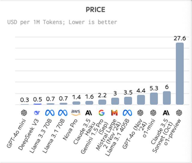 图片泉源:Artificial Anlaysis 代价:DeepSeek-V3比均匀代价更自制,每100万个Token的代价为0.48美元。此中,输入Token代价为每100万个Token 0.27美元,输出Token代价为每100万个Token1.10 美元。