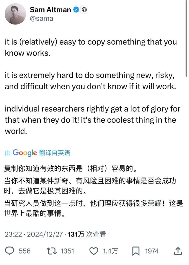 图片泉源:每经记者试用DeepSeek-V3截图 国表里许多用户也都反映了这一征象。而且,12月27日,Sam Altman发了一个帖文,外媒指出,Altman这篇推文意在暗讽其竞争对手对OpenAI数据的发掘。