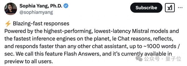 " 欧洲 OpenAI"Mistral AI有新动作了! Le Chat(法语 " 猫 ")全新升级,官方自称它是 " 您生存和工作的终极 AI 助手 "。 ![]() 从本日开始,Le Chat 上线移动端,iOS 和 Android 都支持,不久也将对企业私有底子办法开放。 功能方面,Le Chat 升级主打极速相应,Mistral AI 开辟者关系主管原话是如许婶儿的: Le Chat 的推理、反思和相应速率凌驾任何别的谈天助手,可达每秒 ~1000words。 这个功能被定名为 "闪电答复"(Flash Answers)。 ![]() ![]() 有多快? 来看 Le Chat 与 Claude、ChatGPT 的对比,同样是用 Python 编写贪吃蛇游戏,Le Chat 刚开始就竣事,速率达 1100tok/s,Claude 速率 120tok/s,ChatGPT 为 85tok/s。 除了速率快,Le Chat 还引入了代码表明器功能,加上原有的图像天生、高级文档与图像分析、网页搜刮、Canvas 等,Mistral AI 势要和 ChatGPT、Claude 等卷到底。 要知道,Canvas 等功能在 ChatGPT 那儿是要付费的,而 Le Chat 直接免费就能玩,包罗 " 闪电答复 " 也是免费的。 而付费版在免费版的功能底子上,外加不限量访问最高性能模子和网页欣赏、可选择不与 Mistral AI 共享数据等权限。Mistral AI 表现还将推出私有预览的企业版(Enterprise)。 ![]() 这波操纵把网友看懵 : 不明确你们为什么要和 ChatGPT/Claude 竞争,很烧钱,不是吗? ![]() 网友批评区底下直呼: 还必要 MacOS app~ ![]() AI 公司一个周内相互逾越。 ![]() 再详细来看看 Le Chat 这波新增的代码表明器功能,Le Chat 现已具备高级编码功能。 它利用户可以或许实行沙箱代码、举行科学分析、创建可视化以及运行模仿。 ![]() 好比 prompt:你能表明一下泰勒级数近似的原理吗?给一些正弦函数的例子。 Le Chat 表明时会附带插图阐明(Illustration): ![]() 支持验证代码: ![]() 用代码表明器分析 CSV 数据也不成题目: ![]() ![]() Le Chat 图像生乐成能由 Flux Ultra 驱动,支持画笔墨: ![]() 也有热门网页搜刮功能,附带信息源: ![]() 文档明白功能,对论文的明白可以精准到某张图,好比可以让它表明 Figure 2 的 abcd 都表现啥: ![]() 除此之外,官方还表现即将对全部用户开放 "影象"(Memories)功能,可选择性开启。 它可以相识记着用户偏好,重新发现好久从前的对话,由此能提供个性化学习,跟踪用户实现目的的进度。 好比它能记起你之条件到新年目的是在接下来的 6 个月内将体脂率从 22% 降至 12%,然后帮你订定月度筹划: ![]() 总之,ChatGPT 有的,都得有。 这就不得不提 ChatGPT 的会员专属高级界面 Canvas 功能,Le Chat 免费,可以或许资助用户从 0-1 举行创作。 好比,筹划将来附近内涵巴黎向另一半求婚,已经买了戒指,但还没有筹划别的的细节,哀求创建一个具体的视觉时间线以保持事变的希望有序。 Le Chat 的规划是酱婶儿的,有单独界面展示天生的文稿,也有代码以及可视化。 Le Chat 另有一个功能是可以创建并在对话中 @智能体,智能实行使命: ![]() 好比利用 Le Chat 智能体追踪个人财政,主动化安排日程: ![]() 都能 get 可视化图表的那种: ![]() Le Chat 全新升级后,网友们也已经开始玩起来了。 有网友实验一番事后反馈确实很快: 感爱好的童鞋可以亲身试试~ chat.mistral.ai/chat |