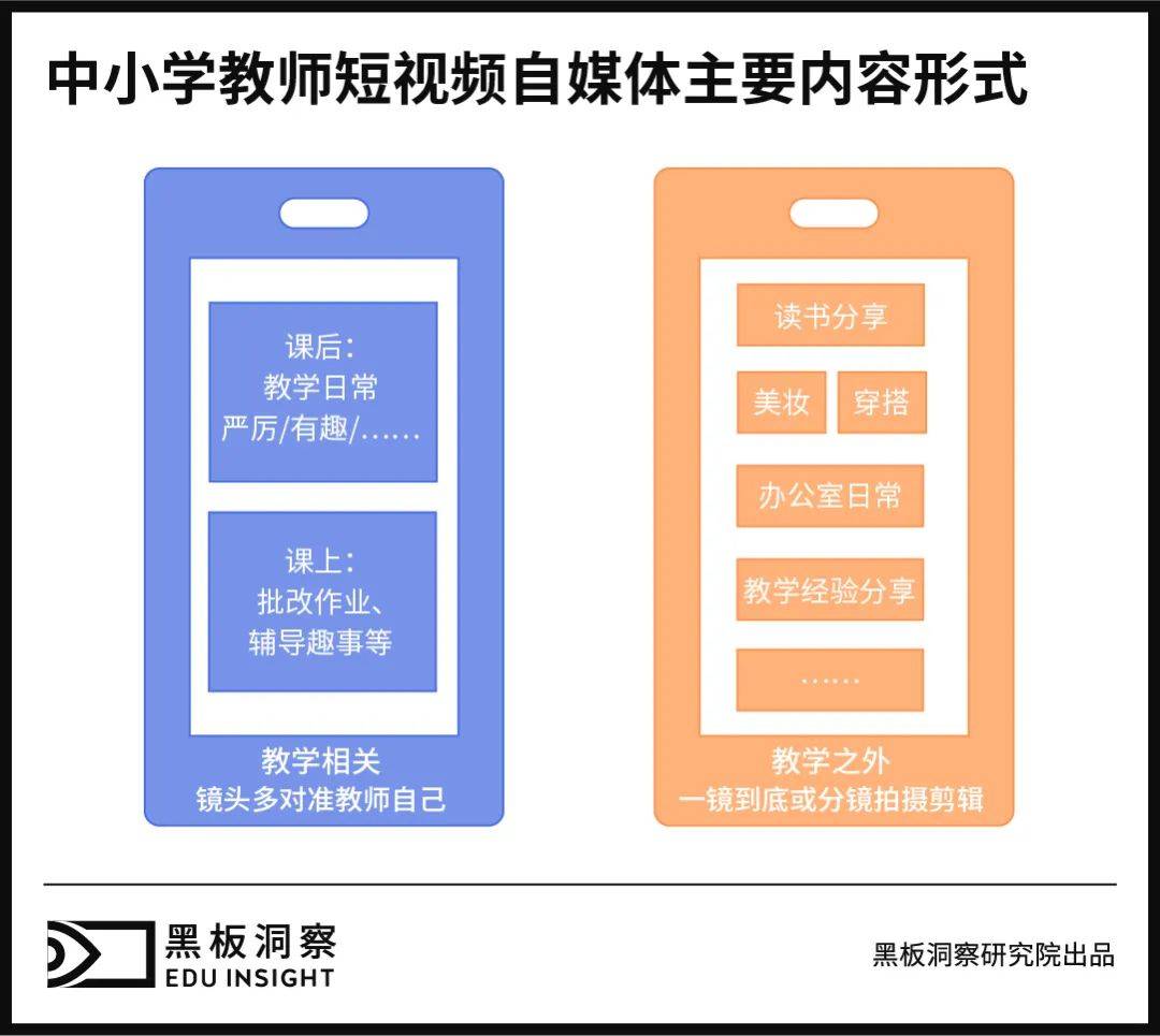 特级教师李文,因强压迫感教学,一度走红网络 然而,随着时间推移,“网红”进入多元化发展,拥有十万、百万粉丝的网红教师越来越多,其概念逐渐演变并存在一定争议。有人认为,网红教师并非真正具备专业素养和深厚知识背景,只是凭借个人魅力或独特形象等方面而获得关注;而另一些人则认为,网红教师亦可以通过自身影响力传递正能量和有益信息。 02手机不能进校园,但短视频可以 教育企业内的短视频自媒体输出多为营销手段,而教育体系内的短视频除官方宣传外,多为教师自发。中小学阶段,以教育为主题材的短视频,无论是教学趣事,还是课上严厉教师带来的压迫感等等,很能够吸引到大众关注,引发共鸣。当前以抖音为例,选择垂直经营的中小学教师多有以下几种形式: