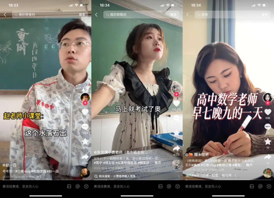 一方面,教师乐于在线上分享各类教育教学日常;另一方面,平台方也乐衷于增加其娱乐化平台之上的教育属性。双向奔赴之下,也切切实实的将优秀教学方法、通俗教育理念等传播至有需要的教师、学校或家长等人群中,为教育均衡化发展做出了一定贡献。尤其是通过短视频自媒体,能让更多人看到、关注到乡村教育目前的发展状况,潜移默化影响愿意成为乡村教师的接力奉献者。 近年来,教育部等有关部门提出的各项宣传学习教育活动,如思政教育、护眼、安全教育等,均提及利用好短视频这一形式。通过视频实现从个人到教师群体形象的正确树立。但在庞大的流量平台面前,中小学教师开始尝试记录更多的“美好生活”,逐渐完成教师到博主的转变。上课“开火车”检查英文单词的英语老师「大河向东流」已经辞职开始带货直播;“扔炸弹”接力背诵语文课文的「东北滴小贾老师」开启小号接广告模式,停更大号,疑似辞职;「木子和又又」因学生入镜头等多重原因身陷舆论风波,已清空穿搭小号店商品…… 03流量与编制,中小学教师的欲望围城 无论是教育单位还是社会,其实并不反感教师网红化。他们反感的是因过度网红化而导致的教学工作懈怠。对于不同教育阶段的教师,互联网对其包容度不一,受“应试教育”长久影响,中小学阶段自带严肃教育属性,当把教学内容放到互联网上,看客娱乐过后多审视的目光,成人视角下的评论与建议更为犀利,教师博主走红后还需承担更多的争议与风险。 不少教师都会在短视频主页上表明,拍摄不占用学生学习时间等字样。或许教师本身将自媒体与线下教学工作区分明确,但不可避免的会遭到诸如此类的质疑。部分教师在拍摄时,容易出现学生入镜等肖像、隐私问题。另一方面,当排斥镜头的学生知道讲台上的老师正在拍摄,是否会畏惧课后提问,错失答疑机会?教师在发展自媒体的同时,也应注意到每位学生的心理,尤其是部分学生的敏感心理。张弛有度地拍摄“教育花絮”。