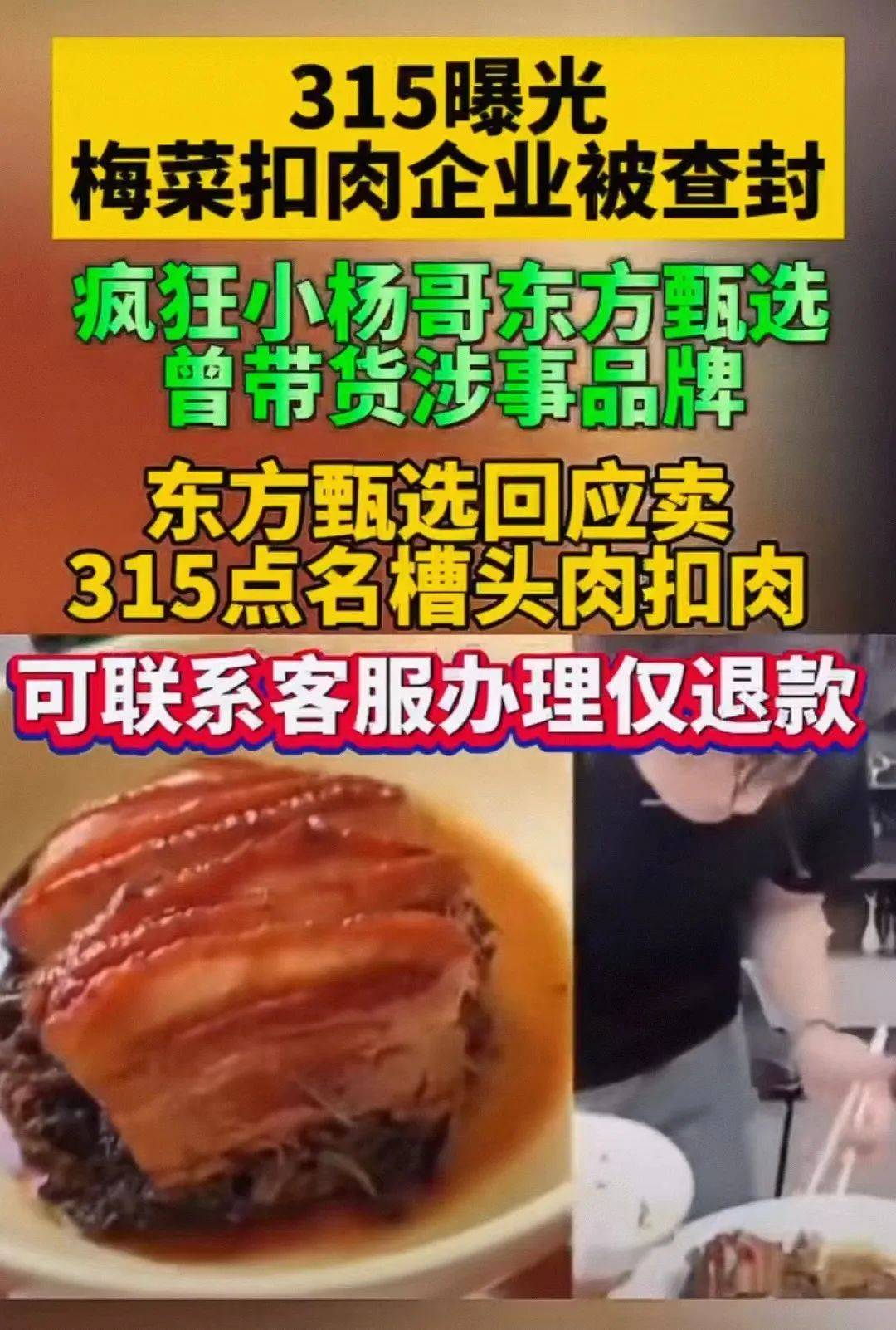 ▲3月16日,知名打假人王海发文称,“小杨哥”和东方甄选都销售过槽头肉扣肉,直播间应“退一赔十”。图/网络平台视频截图 央视3·15晚会曝光“槽头肉”被用来制作梅菜扣肉后,3月16日,知名打假人王海在微博发文称,此次曝光的“安徽东辉科技食品有限公司”生产的“御徽缘”梅菜扣肉,都曾在东方甄选和疯狂小杨哥直播间被大量销售过,且销量不小。 对此,东方甄选随即做出了“联系商家办理仅退款”的回应,等于承认了王海所言不假;截至目前,疯狂小杨哥方面还没有回应。 槽头肉,是指猪头与躯干连接部位的肉,由于其含淋巴较多,在日常生活中也被老百姓称为淋巴肉,市场上正常五花肉批发价格在一斤12元左右,而未经严格处理的劣质槽头肉批发价一斤仅3元左右,价格相差悬殊。 按照《生猪屠宰肉品品质检验规程(试行)》要求,对屠宰后的猪必须进行甲状腺、肾上腺和病变淋巴结、病变组织的摘除、修割及处理。槽头肉流入市场并被正常销售,背后意味着超额暴利。 在社交平台上,话题#王海称小杨哥和东方甄选都销售过槽头肉扣肉#冲上了热搜第一,引发大量关注。带货的产品翻车了,东方甄选、疯狂小杨哥这些头部主播或头部直播间,该不该如王海所说“退一赔十”,他们又应该承担什么样的责任? ━━━━━ “仅退款”可能还不够 针对此次事件,东方甄选客服回应称,这是合作商家的商品,会登记客户信息和订单编号,联系商家办理“仅退款”,而且“基于现在商家退款慢的情况,公司可以先行垫付”。 但此次事件爆料人同时也是打假人的王海却认为,直播电商应该“退一赔十”。“仅退款”与“退一赔十”,这两种善后处理方式差距巨大。 先不妨假设此次事件发生在传统商业时代,没有互联网,也没有直播电商,消费者就是在家门口的小卖部里购买了槽头肉制成的梅菜扣肉会发生什么? 首先,此前购买过的大部分消费者不会得到赔偿。因为,很少人会长时间保留购买凭据,也没有能力找后账,他们甚至可能连曾经买的商品出问题这件事本身,都难以知晓。 其次,少部分启动维权的消费者也不会获得太多补偿。因为,根据《产品质量法》的规定,产品出现质量问题,责任主要在生产者,销售者应当负责修理、更换、退货,对造成损失的销售者赔偿损失。至于“退一赔十”等惩罚性赔偿,则并非普遍规则。 但直播电商大行其道的时代,情况发生了重大变化。首先是消费者的维权能力大大增强,因为在网上,一切消费都被记录在案,买的东西在历史订单里一目了然,很方便找后账。 根据《电子商务法》,电商平台经营者应当记录、保存平台上发布的商品和服务信息、交易信息,并确保信息的完整性、保密性、可用性。商品和服务信息、交易信息保存时间自交易完成之日起不少于三年;法律、行政法规另有规定的,依照其规定。 另据最高院《关于审理网络消费纠纷案件适用法律若干问题的规定(一)》,平台内经营者开设网络直播间销售商品,其工作人员在网络直播中因虚假宣传等给消费者造成损害,消费者主张平台内经营者承担赔偿责任的,应予支持。 这意味着,直播带货因虚假宣传等导致产品出了问题,消费者有权在“仅退款”之外根据带货主播所涉责任轻重主张更多赔偿。 在直播带货中,承诺“假一赔十”的比比皆是,但此次事件却是产品源头和食品监管监督方面出了问题,可能并不合适简单比照“假一赔十”即要求相关直播电商“退一赔十”。 当然,如果带货主播在直播间,明确就产品质量做出了额外担保,并承诺了相关赔额,比如赔三或赔十等,则一旦产品出了质量问题,即便不是因虚假宣传等导致,也需按照承诺对消费者进行赔偿,无推诿余地。 ━━━━━ 平台理应主动介入 实际上,带货主播在直播间销售劣质产品,是否应该无条件承担“退一赔十”这样的惩罚性赔偿义务,目前坊间仍存在巨大争议。 打假人王海明确支持对直播电商加重赔偿,反对意见则认为,东方甄选和“小杨哥”带的货都是合法上市的产品,产品出了问题,应追究责任的是厂商和监督监管部门。 反对意见进一步追问,如果这次重罚“小杨哥”们,将来又该如何对待市场上处于类似地位的各中间商、销售商乃至电商平台? 严格按法律条文讲,带货直播间自然可以花钱请律师帮助自身寻求和小卖部等同的责任待遇,但估计大部分头部主播不会选择走这条路,除非想就此退出这一行当。因为,这相当于为了减轻责任而把自己放在了“衣食父母”的对立面。 在此情况下,或许主动以承担更多责任的方式与消费者达成和解,是更合理的解决之道。 在2020年发生的某头部主播售卖“糖水燕窝”事件中,一共产生销售金额15495760元,生产方被市场监管部门处以200万元的行政处罚,直播间一方则承担了“退一赔三”的责任,共先行退赔61983040元。 如今的事实证明,该直播间后续度过了此次危机,创造了更高的销售额。 与小卖部等传统售卖者相比,头部主播对消费者有更强的影响力,对生产者有更强的议价能力,在整个商业链条上更是占有更高的利润比重,一旦出了问题,于情于理都应承担更多责任。 否则,即便不能在法律上获得符合世情人心的处罚,也会在商业上付出更多代价。 如果有人拒绝承担相应责任,主播所在平台就应该发挥制衡作用。在法律法规之外,只有平台有能力使不良主播付出超额代价,他们或许不
