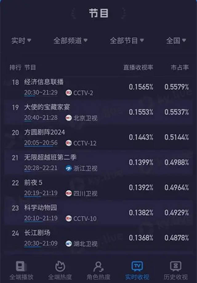 或许是因为刚刚首播,节目的数据表现并不是很给力,播出后的收视率竟然只能排在第二十一位,这还是蓝台主推的节目,只能说节目能不能火就得看有没有什么出圈的内容了。毕竟从首播数据来看,节目前期是没给节目带来什么观众基础的。
