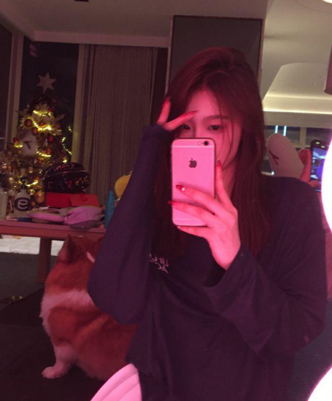 照片中,小羽坐在王思聪家中的地毯上,抱着王思聪的狗狗柯南比 V,红色的灯光照在小羽稚嫩的脸庞上,更觉得美丽动人。小羽没有看镜头,而是盯着柯南,脸上抑制不住的开心。