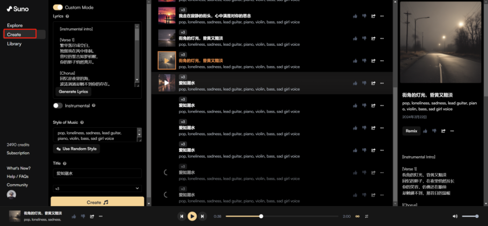 更多的歌,大家可以自己去Suno上跑着玩,体验一下AI音乐的魅力,这种直出的感觉,还是非常爽的。