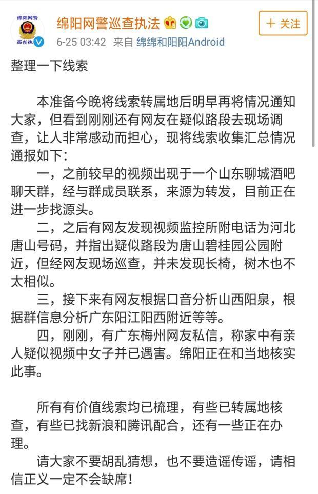 6月24日,一段女子在街头遭男子凶残踢打的视频在网络上热传,引起人们关注。根据网友的反馈,此事件引发全网关注后,女子被打地点流出多个版本,四川绵阳、广东梅州、福建莆田等地警方纷纷介入调查。 ![]() ![]() 24日晚,@绵阳网警巡查执法发声“今晚不睡,若有线索,请发于评论区”。 ![]() 据福建莆田市公安局25日通报,24日上午当地西天尾派出所接处警发现辖区北大村一河边有一具女性尸体,上身穿白色上衣,下身穿红黑色格子裙,脚穿黑色高跟鞋,面部已严重腐烂。经公安机关技术部门现场勘验,未发现明显他杀迹象。且经警方对比确认,网传女子被打视频受害者与该女性尸体并非同一人。 ![]() 25日中午,@时间视频从大连市甘井子区中华路街道办事处获悉,男子当街暴打女子事件,发生在该街道辖区苍山路,街道办接到华东路派出所报告,称已对此事立案调查。 大连警方通报: ![]() 女子深夜回家途中遭男子殴打 刚刚,@大连公安发布通报称,近日网传“女子半夜遭到殴打”视频,经我市警方核实,系2019年6月22日凌晨1时许,发生在甘井子公安分局华东路派出所辖区的一起警情。 经查,被害人吴某(女,29岁,辽宁盘锦人)当夜在回家途中被一男子殴打,吴某拨打110报警。接警后,甘井子警方连夜立即开展工作,并抽调精干警力成立专案组,全力开展案件侦破工作。 经医院诊断,被害人吴某脸部软组织挫伤,经治疗目前已出院。大连警方将对案件侦办情况及时向社会予以公布。 网友评论: ![]() 转给身边的女同胞!公共场所女性该如何保护自己 炎炎夏日,如何在公共场所防“走光”?拥挤的公交地铁上如何“防狼”?应对“恶狼”跟踪有哪些招数?如果遭遇歹徒正面攻击,怎么做才能逃脱…… ![]() ![]() ![]() ![]() ![]() ![]() ![]() ![]() ![]() |