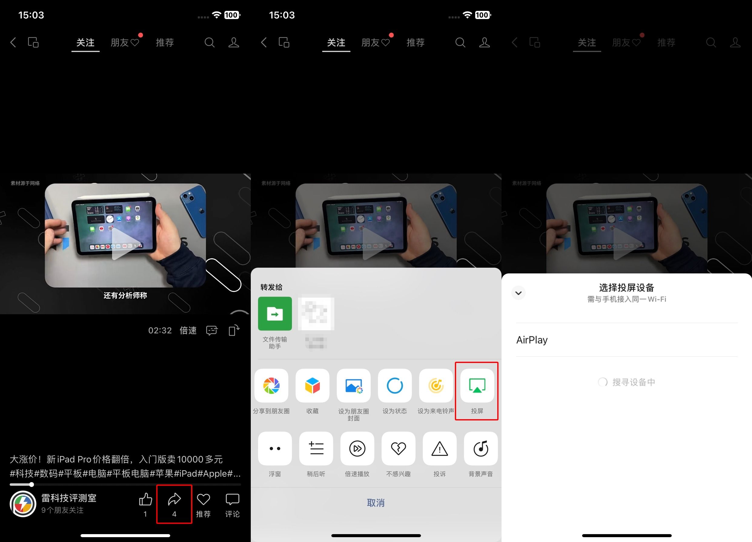 小雷实测嗷,目前这项「投屏」功能,还没有覆盖到所有的视频号和所有视频。