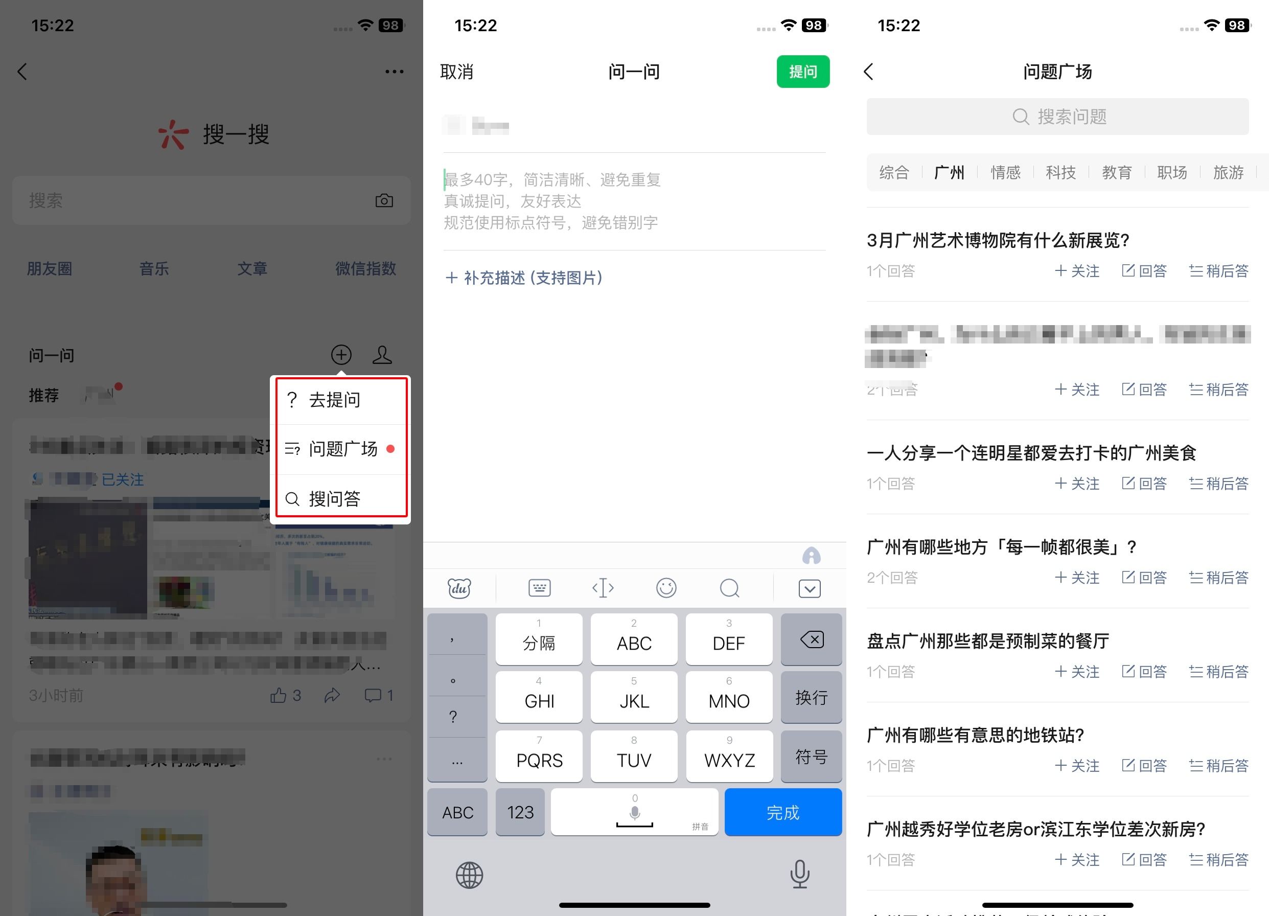 我们可以在搜一搜,提问、查看、搜索以及回答问题,也可查看个人的互动情况。