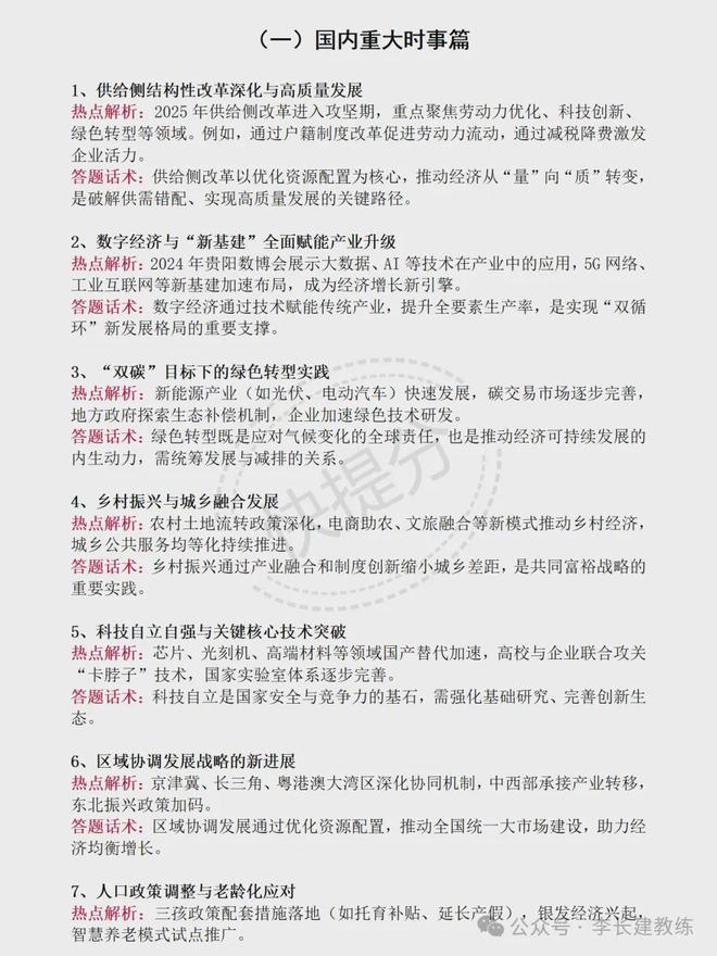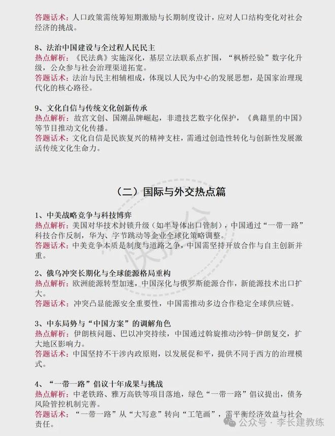 作文:热点 ![]() 2025高考作文冲刺 | 七大主题,热点事件,人物素材,满分段落! ![]() 主题一:贸易战热点素材 从“木受绳则直,金就砺则利”,到“宝剑锋从磨砺出,梅花香自苦寒来”,再到“世上无难事,只要肯登攀”,中国人的基因里,从不惧怕任何风险挑战、困难矛盾,更能将各种外来压力视作推动自身进步的动力。 从山重水复到柳暗花明,路是从荆棘丛生处开辟出来的。只要方向对了,就不怕山高路远。变压力为动能,化挑战为机遇,制造业苦练内功,服务业提升质效,带动外贸结构实现蝶变,我们不仅能实现自身的稳定发展,还将为全球经济发展注入更多稳定性。——人民网 对世界而言,中国“杭州六小龙”现象无疑也是一个启示:人类真正需要的,并非目光短浅的投机与刺激,而是志存高远的坚守与跋涉;人类的未来,不在闭门造车、“小院高墙”的孤立中,而在敢为人先、开放共赢的格局中。 ——人民网 主题二:科技热点素材 进入2025年,中国创新成果井喷式涌现:神舟二十号载人飞船飞天在即,中国航天持续标注中国的新高度;CR450动车组样车试验时速450公里,蓄力刷新中国的新速度;DeepSeek“刷屏”全球,宇树机器人火爆出圈……新质生产力深刻改变着中国的经济发展。 ——人民网 “梦想”号大洋钻探船建成入列,探寻海洋深处的秘密;量子计算机信号闪烁,激荡算力觉醒的潮声;人形机器人破圈迭代,孕育未来产业的雏形……时间之河奔腾不息,创新之翼自由飞翔。中华大地上,处处涌动着活跃跃的创造,书写着日新月异的进步。 ——人民网 嫦娥六号首次月背采样,“中国天眼”极目苍穹,“雪龙2”号破冰前行,梦想号探秘大洋,全球最快高铁列车CR450动车组横空出世,深中通道踏浪海天……近日,外交部发布的一段名为“未来已来”的高燃视频,展示一系列中国创新成果,引发广泛共鸣。逐梦星辰大海,奋斗开创未来,新时代中国在高质量发展之路上稳健前行。 ——人民网 主题三:科技与文化融合类热点素材 《哪吒2》以及之前爆火的游戏《黑神话:悟空》都是将中国传统神话故事以全新的叙事方式、国际化的美术风格呈现给观众。通过对经典形象的现代化塑造,使得中国文化受到全球观众和玩家的追捧。路透社称,《哪吒2》的爆火,印证了中国本土IP的强大号召力。人们看到,《哪吒2》和《黑神话:悟空》作为具有国际竞争力的作品,展现了中国文化的独特魅力,它们的成功让更多创作者意识到,中国文化不仅可以满足国内市场需求,还可以被全球共享。 ——人民网 今年开春,生机勃勃。DeepSeek(深度求索)“横空出世”,人形机器人春晚刷屏,科技创新的种子破土成林;春节假期,国内出游5.01亿人次,入境游客同比增长150%,“流动的中国”活力四射;《哪吒2》票房冲进世界影史前七,文化自信的花朵迎春怒放…… ——人民网 科技,始终稳居“第一生产力”的王座。DeepSeek在世界一鸣惊人,机器人跳秧歌惊艳春晚,亚冬会实现100%绿电供应,特效加持的电影《哪吒2》票房屡创新高,“黑科技”赋能非遗更显中国范……今年开春以来,一个个“现象级”的新科技、新场景、新气象纷纷涌现,这些生动案例彰显着我国科技创新持续深化,更展现着中国经济社会发展向阳而兴的蓬勃生机。 ——人民网 主题四:开放与交流热点素材 一位是来自美国的“甲亢哥”,他的环球直播之旅,被称作“数字时代的马可·波罗游记”。透过他的真实镜头,全球观众看见一个“实况中国”,看到“保镖要失业”的良好治安、功夫变脸等炫酷文化、无人机送外卖的科技感,也在他与广场舞阿姨共舞、和夜市摊贩讨价还价、被路人用英文进行“中国式文明劝导”中,感受到中国的友好、活力与秩序…… 从网上互晒合影的中美家庭在上海“奔现”,到美国小伙保保熊、加拿大博主瑞安成为中国“自来水”,再到为了证明自己没说谎,带邻居来中国旅游的澳大利亚“老外”……中国免签过境政策不断放宽,“China Travel”成为潮流,越来越多外国人来到中国、认识中国、爱上中国。摆脱了灰暗滤镜,穿透了偏见误读,跨越了文化隔阂,一个真实的中国被重新发现,展现出动人心魄的魅力。 ——人民网 主题五:梦想与奋斗热点素材 梦想之翼,因奋斗而坚韧。“尽管遭遇挑战,我们从没想过放弃,只会越战越勇”,这是民营企业家李积回的决心;“不怕风高浪急,闯过去才有未来”,这是“80后”海归创业者袁玉宇的勇气;“生活给了我多少积雪,我就能遇到多少个春天”,这是外卖员王计兵的心声;“命运永远掌握在我们自己手中,科技强国步伐永不停止”,这是大学生姜未的志向;“别人觉得种田苦,但我看好农业的广阔前景”,这是“90后”新农人陈帅宇的选择…… ——人民网 是的,这种书写不只吕玉霞,也不只诗歌。相信很多人都有同样的感受:近年来,素人写作渐成趋势,也愈来愈受关注。快递小哥胡安焉《我在北京送快递》、“外卖诗人”王计兵诗集《赶时间的人》、女儿视角下的《我的母亲做保洁》等作品成畅销书,在吕玉霞之前,也有韩仕梅等分享“田园诗人”的荣光。而他们也只是在诸多巧合下被舞台追光灯照亮的极少数,在更多尚未被“看见”的地方,相信存在一个更为庞大的群体,他们默默写作,生活重压之下仍不放弃对精神世界的追求,绵密记录下真实的日常与复杂的情愫。 ——光明网 主题六:巾帼榜样热点素材 