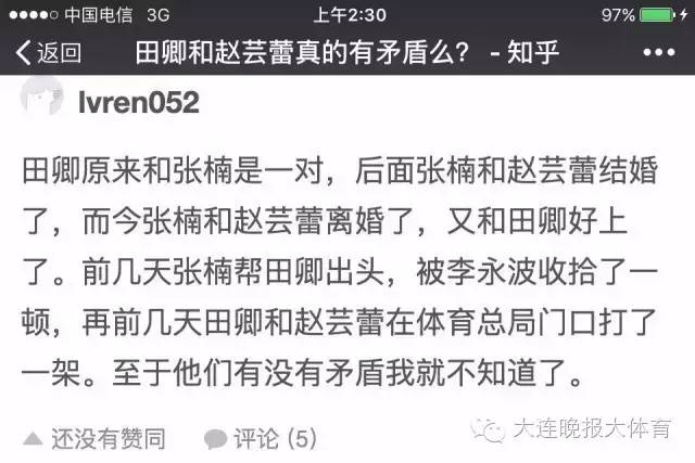 那之后他们险些一起势如破竹。2011年和2014年两次世锦赛冠军,2012年伦敦奥运会夺冠、亚锦赛夺冠,当2014年仁川亚运会两人站上冠军领奖台时,他们已经实现了金牌大满贯。同年,张楠和赵芸蕾领证,两人好像是人生的赢家。 不意,本年3月,中羽网论坛有人发帖说张楠、赵芸蕾仳离了。仳离是由于圈外人,而有爆料说圈外人竟然是赵芸蕾的双打搭档——田卿。许多网友很早就发现了端倪。起首是发现女双赵芸蕾和田卿的状态不对,在瑞士赛输给日本选手,在汤尤杯上输给韩国选手……活着锦赛上,赵芸蕾和田卿在女双角逐时间,完全零交换,不说一句话,有什么话两人分别转头跟锻练说。尤其是世锦赛上,两人跌倒,竟然连一个相互搀扶的动作都没有……网友同样发现,赵芸蕾、张楠在场上“零交换”三个月之久。