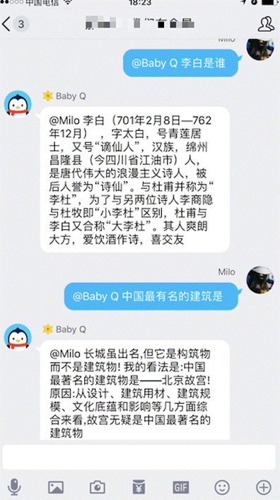 克日,QQ群参加的“baby Q”和“QQ小冰”两款呆板人,受到大量QQ用户的追捧,小编也不由得好奇要来测评看看,到底谁更智能。 心情包互动,小冰的反应 ![]() babyQ的反应 ![]() 在心情包的环节,小冰的答复让人有点摸不着头脑,小编我不太确定她是否辨认出了心情,而Baby Q全部的答复,都跟我发出的心情相干,与之互动起来更为风趣。 百科问答,小冰的反应 ![]() baby Q的反应 ![]() 百科问答环节,小冰的答案显着短缺,一些很简朴的知识都无法答复,在这方面,它与babyQ照旧有大差距的。 通过这两轮的对话,babyQ 和小冰谁更胜一筹,我想各位本身内心已经有了答案。 【原标题:Baby Q VS QQ小冰,谁更扎心?】 |
