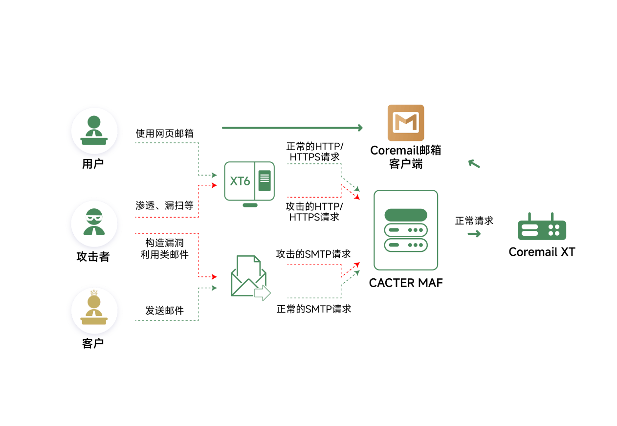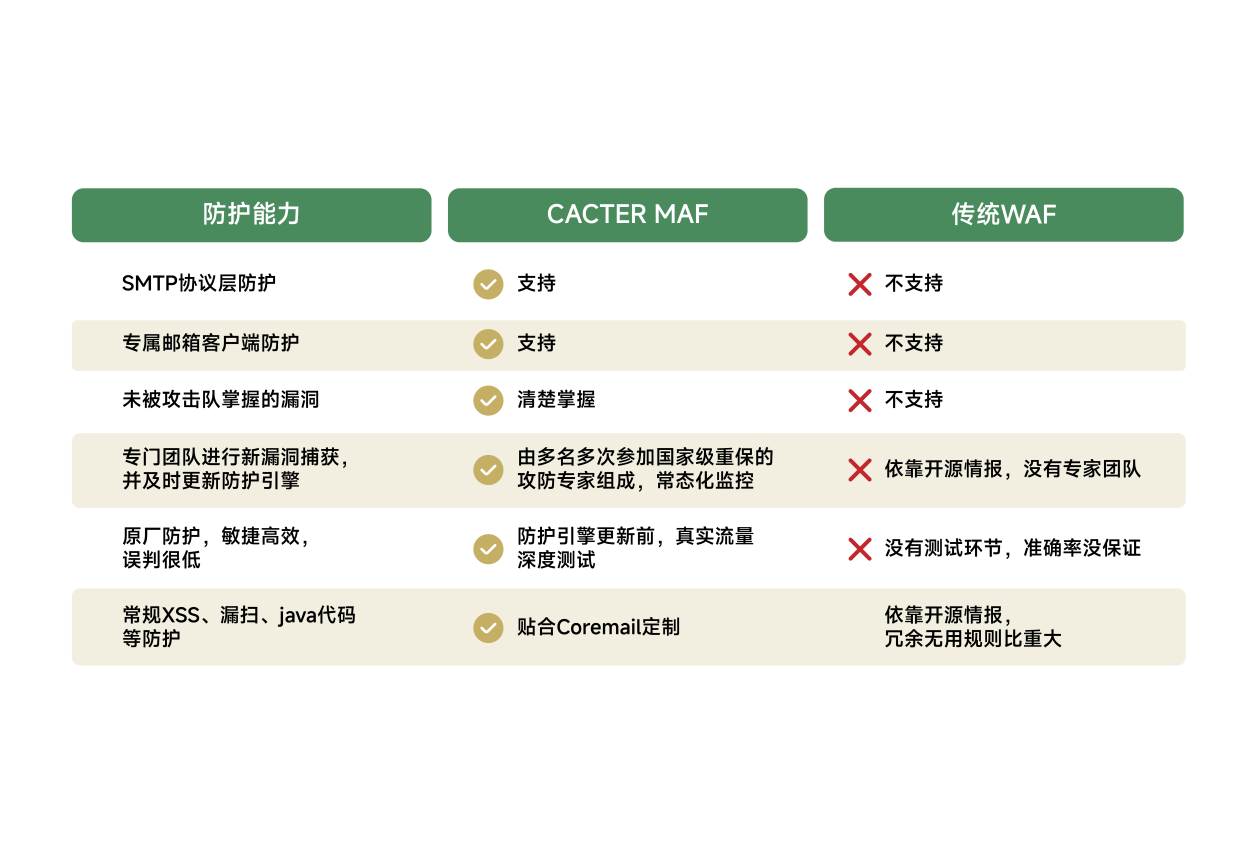 某企业重保期间遭遇一连 3 天高强度邮件攻击,焦点业务邮件一度停止;尚有企业一样平常运营中,黑客借 SMTP 协议毛病盗取焦点数据.....关键是,这些两家企业都摆设了+邮件网关,却照旧还是中招。 这并非个例,数据表现:2023 年已有 60% 中国企业遭遇邮件毛病攻击,2024 年上半年这一比例进一步升至 68%,企业邮件安全压力连续攀升。更扎心的是,这些遇袭的企业里,80%都装了传统WAF+邮件网关,却依然没挡住黑客的攻击。 传统WAF+网关防护,真的够用吗? 答案显然是否定的——这套许多企业依靠的”防护组合“,早已跟不上黑客攻击节奏:既没有针对邮件SMTP/HTTP 协议、客户端的专项防护逻辑,也缺乏对未知威胁的前瞻相应本领,直接袒露三大短板: 1. 毛病补丁慢,空窗期长达数周,焦点数据随时面对被盗取、服务器被操控的风险; 2. SMTP 协议层攻击难防,WAF 和平凡网关查不出潜伏入侵,黑客能轻松通过邮件突破内网; 3. 遇未知毛病只能被动挨打,重保期怕高强度攻击搞垮体系、一样平常用怕潜伏渗出偷数据,企业安全本钱和谋划风险双重增长。 企业急需一款能同时应对重保攻击与一样平常威胁的防护产物——Coremail CACTER邮件入侵防护体系(CACTER MAF)应运而生。 重保实战语言:CACTER MAF高效拦截75 万次攻击,解防护困难 就在本年重保期间,CACTER MAF 交出了一份硬核结果单:累计拦截751,566 次攻击,涵盖高危毛病使用、SMTP、Coremail 客户端及 Web 攻击,护航CACTER用户重保全周期”0失陷“;在不少厂商遭遇攻击失陷的配景下,其防护硬气力尤为突出。 CACTER MAF焦点作用在于,可及时拦截通过SMTP/HTTP协议发起的N-Day毛病攻击(含变种),阻断黑客入侵邮件服务器和客户端,防护传统方案无法覆盖的灰色地带。