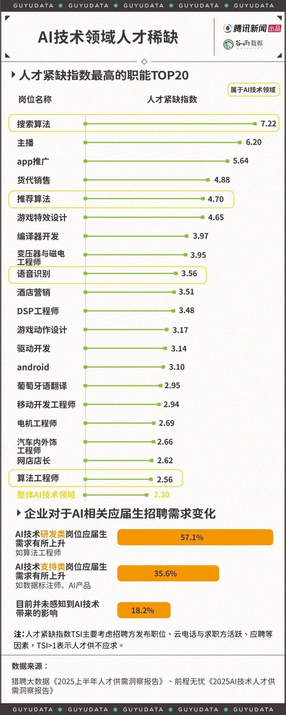 根据猎聘大数据,本年上半年人才最紧缺的 20 个职能岗位中,有 4 个都来自 AI 范畴,此中搜刮算法岗位最为紧俏。