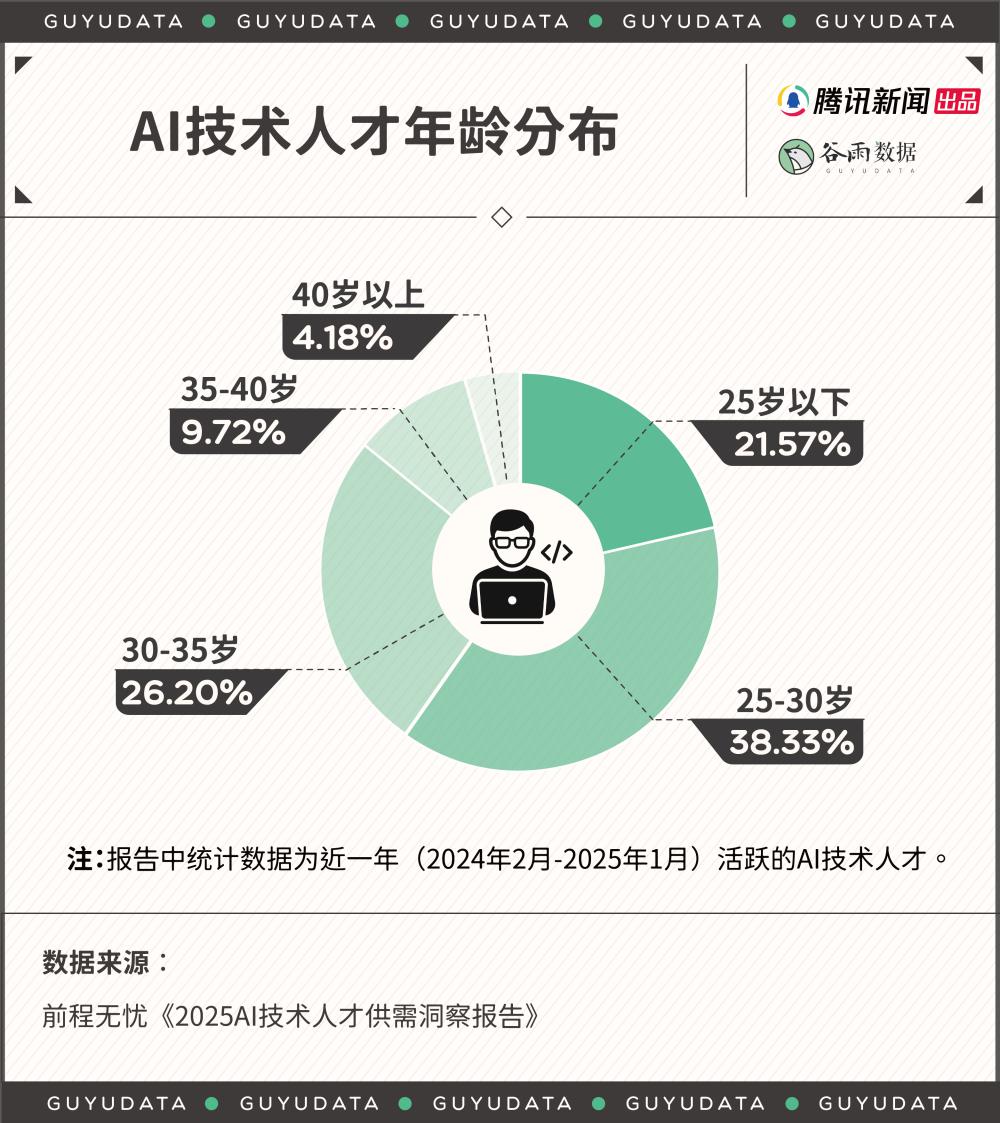 AI 行业团体出现高度年轻化。数据表现,国内六成从业者都在 30 岁以下,凌驾 35 岁的从业者占比仅一成多。