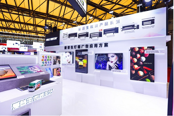 展会现场,爱普生带来了基于SC-S8180的多样介质户外广告方案,包罗户外灯箱、户外车贴、弱溶剂PP、相纸、弱溶剂油画布等样品。